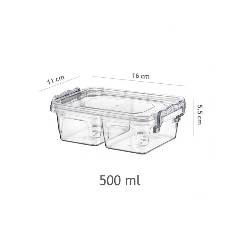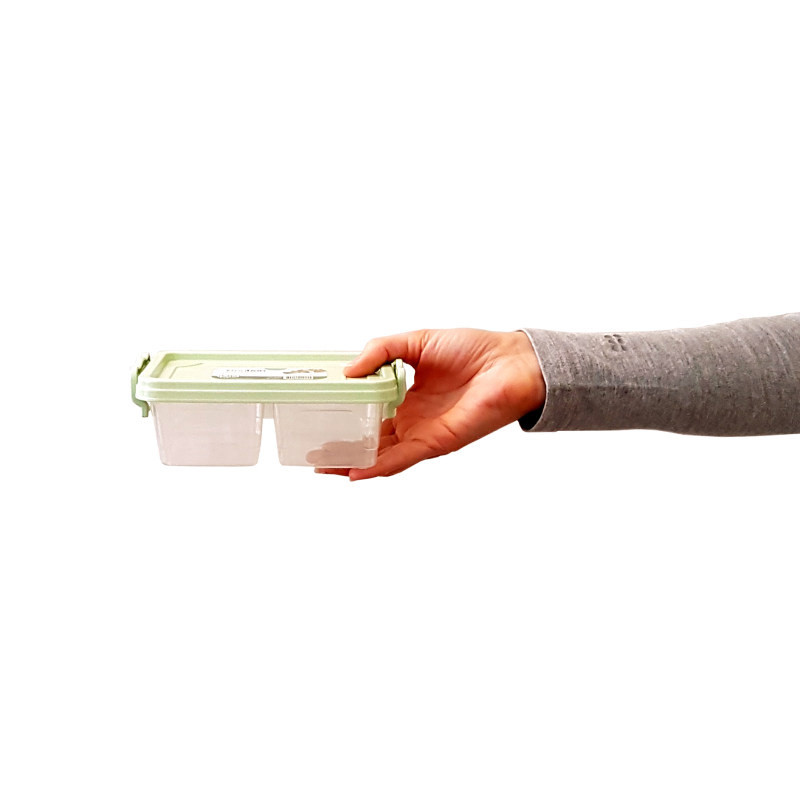 این محصول بسته دو عددی از ظرف نگهدارنده دوخانه هوبی لایف است. درب این ظرف دوقسمتی با دو گیره از کنار به خوبی قفل میشود و دارای حجمی معادل 500میلی لیتر است که برای نگهداری دو نوع مواد غذایی مختلف کنار هم مناسب است. این ظرف را میتوانید درون ماکروویو، فریزر و ماشین ظرفشویی قرار دهید.