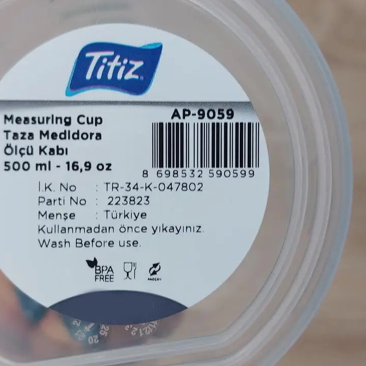 ظرف اندازهگیری - دارای بدنهی مدرج - مناسب برای اندازهگیری انواع مایعات و مواد غذایی مانند آرد، شکر، روغن و... - دارای یک دسته برای حمل آسان پیمانه - گنجایش 500 میلیلیتر - ساخت ترکیه